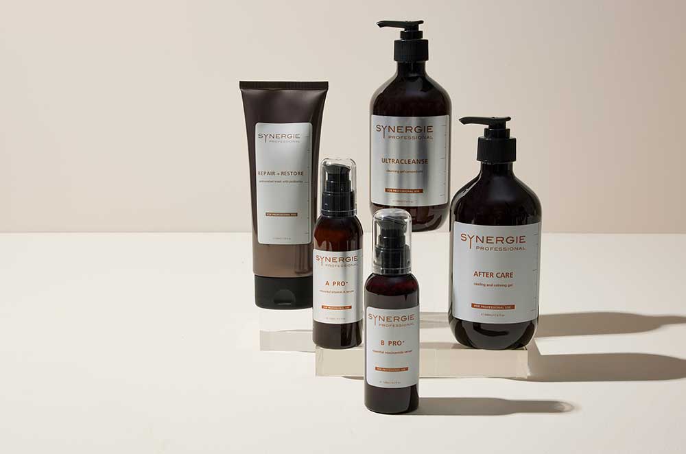„Synergie Skin“ sujungia klinikinius duomenis ir kokybiškas veikliąsias medžiagas, kad būtų sukurti veiksmingi, etiški, įrodymais pagrįsti produktai. Tai yra mūsų švaraus mokslo filosofija, kuri remiasi viskuo, ką kuriame.