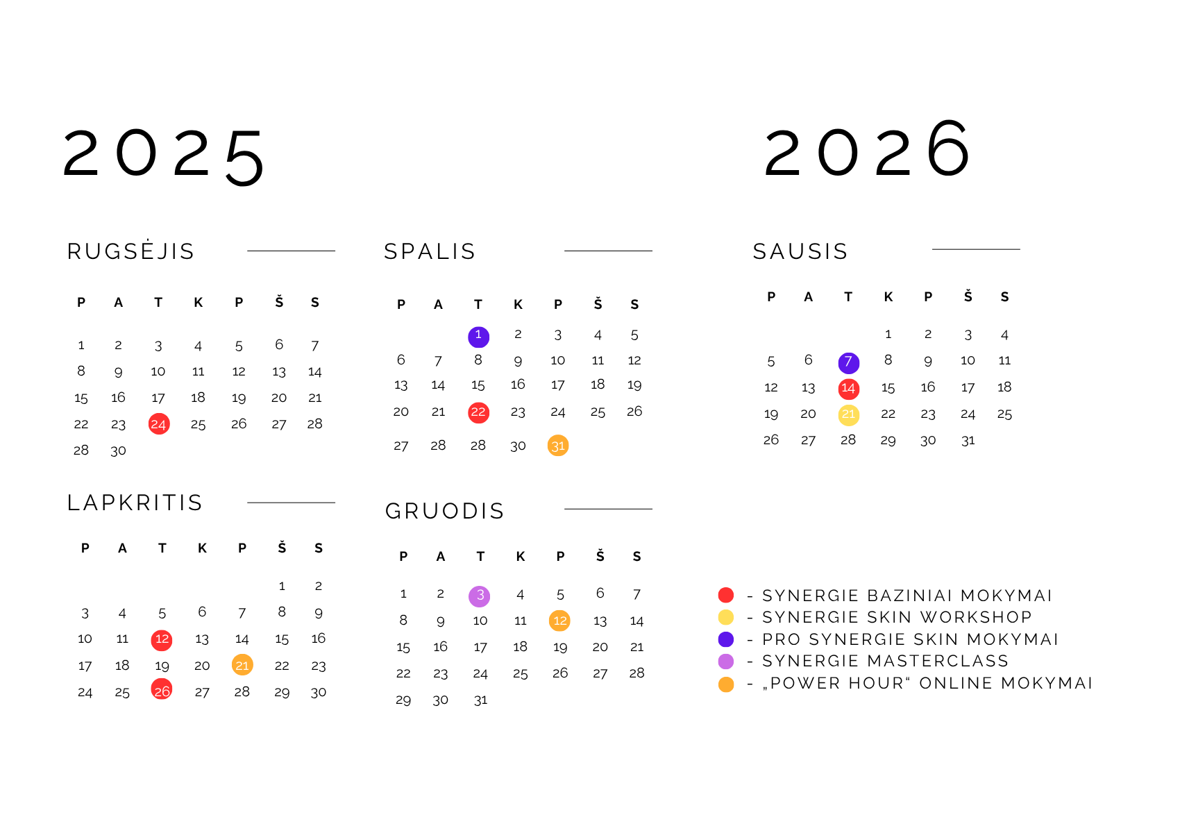 - Baziniai Synergie Skin mokymai, skirti norintiems pradėti dirbti su Synergie skin.