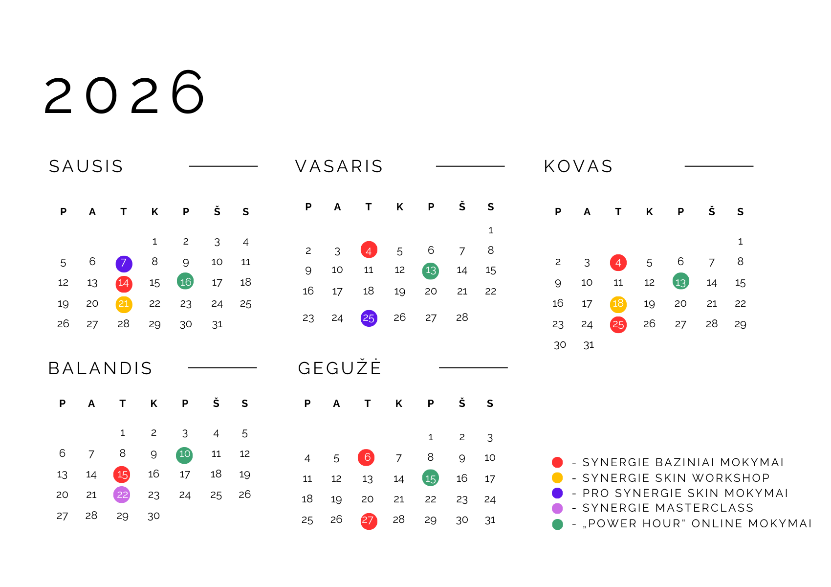 - Pro Synergie Skin mokymai skirti pažengusiems specialistams, jau dirbantiems su Synergie skin kosmetika.