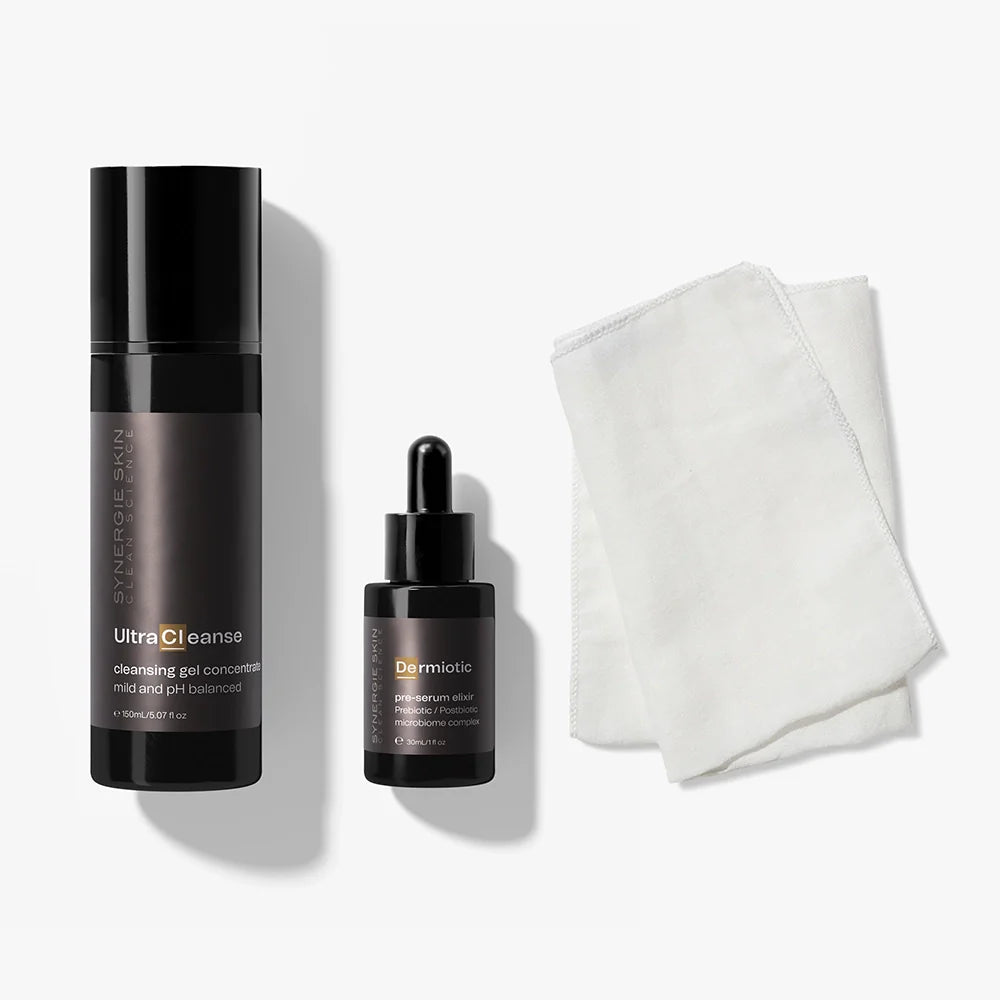 Švari oda yra būtinybė, bet lygiai taip pat svarbi ir pusiausvyra. Dviejų žingsnių rinkinyje suderintas UltraCleanse – mūsų gelinis veido prausiklis – su Dermiotic, prieš-seruminiu eliksyru, kuris palaiko odos mikrobiomą ir padeda jai išlikti ramesnei.